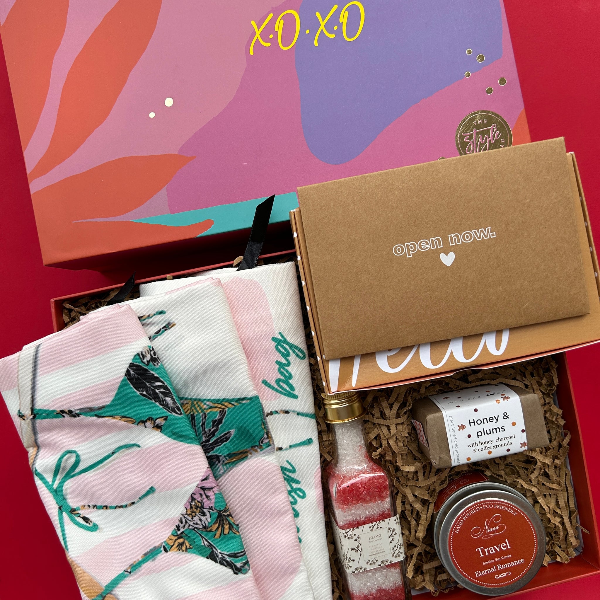 Experience Eternal Romance with a travel tin candle, "Open When" love letters, a trio of travel lingerie bags, candy cane bath salts, and a honey & plums soap bar. It's a timeless expression of enduring love, a Valentine's day gifts for him or her that transcends the ordinary.